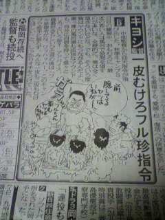 「最近の若い人はフロで股間を隠すのが多い。俺は隠さない。そういう度胸がマウンドにもつながる。フル珍指令だ(笑)このキャンプで、みんな一皮も二皮もむけてほしい。(一部省略)」