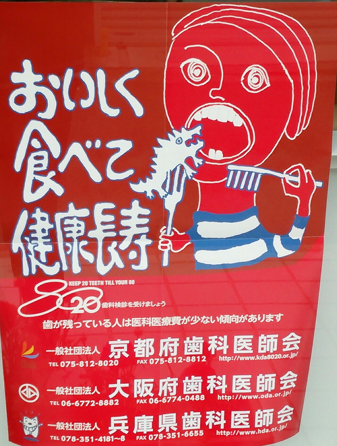 コドモがムシ歯になっても、「痛い~!恐い~!」ってイヤがるんじゃなくて、「ポスター恐い~!ボクもあんなんなるん恐い~!ヘンなモン食べさせられる恐い~!」って歯医者行きたがらなくなりそうなポスターです(笑)